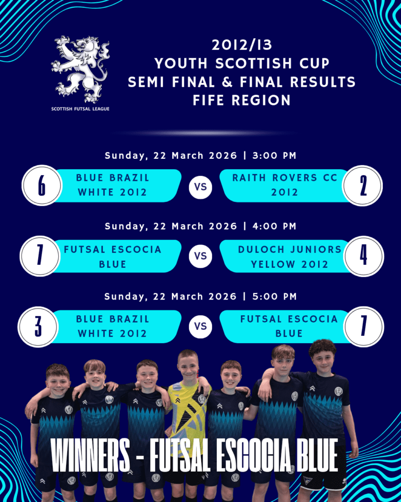 Youth Teams: It was the finals of the 2012/13 Scottish Cup (Fife Region) yesterday and our Blue team ended up winners after a semi-final win over Duloch Juniors and a final win over Blue Brazil White. What makes it better is that most of the team are 2013 age group and playing a year above. The team now progresses to the national finals that take place in June. Well done boys!!